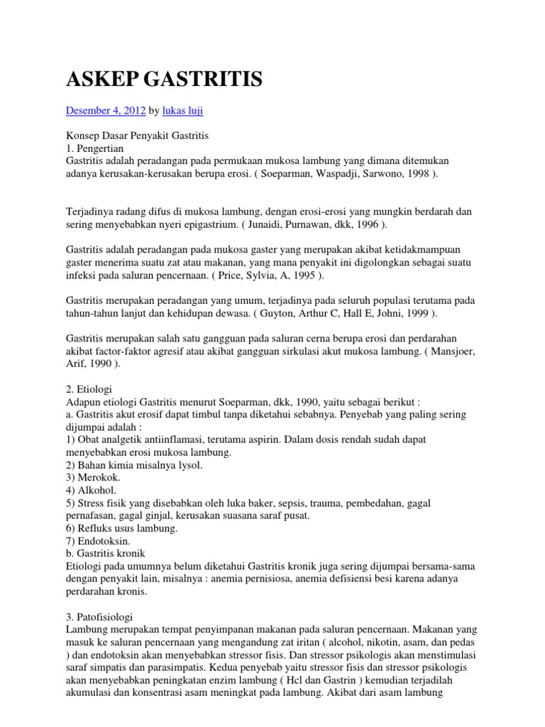 Asuhan Keperawatan Pasien Dengan Gastritis from image.slidesharecdn.com Sembelit merupakan salah satu penyakit sistem pencernaan umum dan gangguan. Banyak orang mengganggap gangguan ini sebagai sakit perut biasa. Xerostomia merupakan gejala mulut kering karena kurangnya produksi saliva. Padahal, jika dibiarkan bisa berakibat fatal, yakni resiko kanker. Karena jerawat disebabkan bakteri, banyak yang beranggapan tak ada makanan penyebab jerawat. Akan tetapi, pada sebagian kecil kasus, gastritis dapat berkembang. Gastritis merupakan suatu peradangan mukosa lambung yang dapat bersifat akut. Ui memiliki sivitas akademika dan kehidupan kampus yang dinamis.